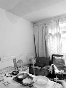 昨日上午,記者在大興巷20號(hào)見(jiàn)到,這是一棟七層樓房,肢殘的方菊梅女士與91歲的老母親住在一樓,廚房、客廳和臥室的天花板上到處是滲水點(diǎn),部分墻壁濕透并已脫落。